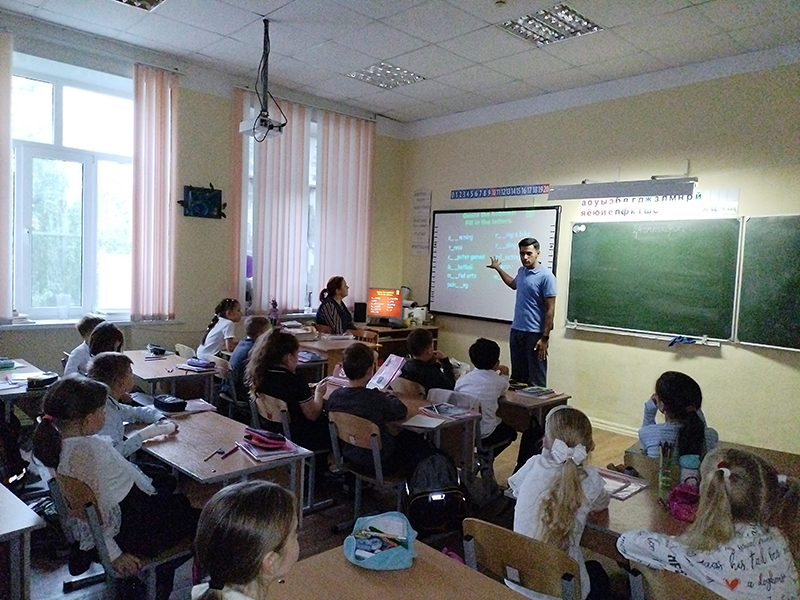 24 октября в школе №19 Центрального района успешно прошли викторина и английский разговорный клуб от Центра иностранных языков «Ревод» с носителем английского языка Ирфааном и к.ф.н., доцентом Ириной Александровной Мурзиновой!
