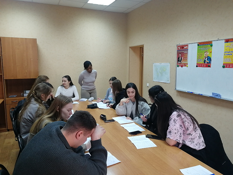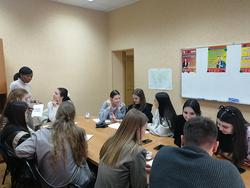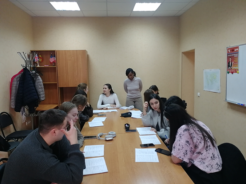 13 марта в ЦИЯ «Ревод» успешно состоялся очередной, 22-й, Английский Клуб для студентов, проведенный профессиональным преподавателем из Кении Одри! В этот раз в гости пожаловала многочисленная группа студентов 5 курса ВГСПУ. Тема Клуба «Virtual communication» («Виртуальная коммуникация») вызвала большой интерес среди студентов, которые активно спорили и высказывали своё мнение по разным аспектам актуальной темы виртуальной коммуникации, являющейся неотъемлемой частью современной жизни. Студенты – их было 11! - с удовольствием общались с носителем английского языка из Кении! Безусловно, они также обогатили свой словарный запас. В конце мероприятия студенты насладились просмотром эпизода из известной комедии «Дневник Бриджит Джонс».