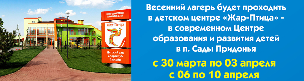 Новая красивая база отдыха расположена в живописном месте на территории Центра образования и развития детей «Жар-Птица», п. Сады Придонья. Здесь создана вся необходимая инфраструктура для полноценного отдыха детей 7 – 10 ЛЕТ:
