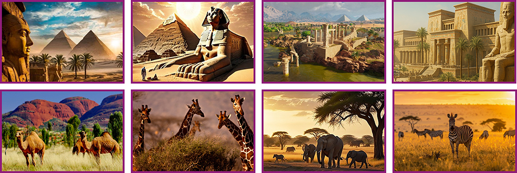 Дети узнают о традициях, праздниках и обычаях разных народов Африки, познакомятся с их самобытной культурой, спортом, музыкой и танцами, которые оказали влияние на развитие многих стран мира. Особое внимание будет уделено удивительному миру африканской природы и животных: от величественных львов и гигантских слонов до редких обитателей саванн и джунглей. Ребята отправятся в захватывающие «путешествия» по африканскому континенту, посещая разные страны.
